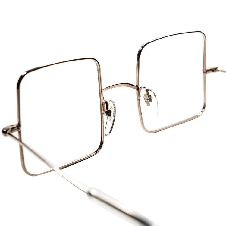 当時のスクエア系のメタルフレームでは比較的珍しい縦横比がほぼ1:1の正方形型のシェイプが