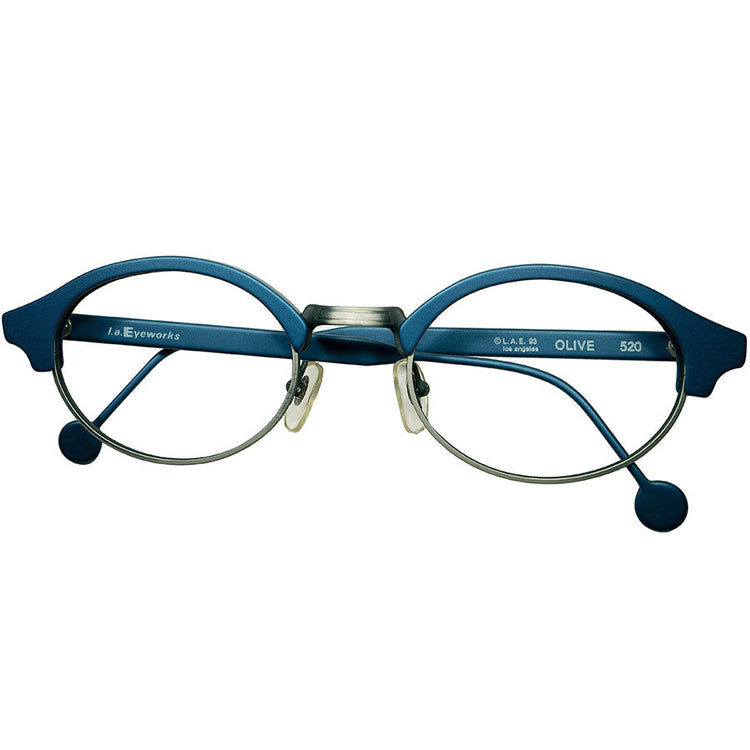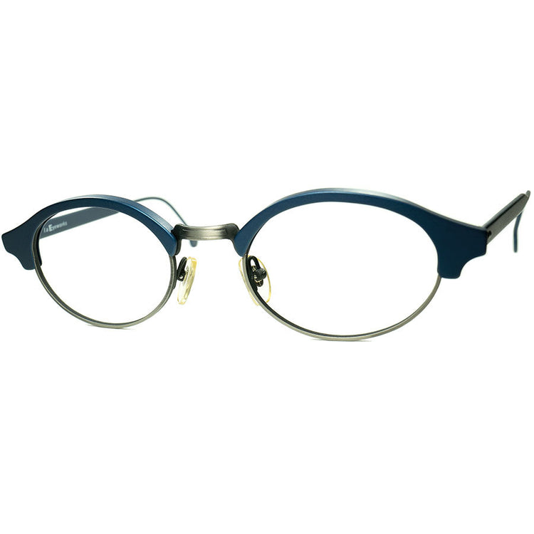 ハイセンスxSTYLISH 1990sデッドストック ITALY製l.a.Eyeworks アイワークス 彫金リムOVAL PANTO型フルメタル素材 ブロータイプ INDIGO 眼鏡 ヴィンテージ ビンテージ メガネ 【a7603】