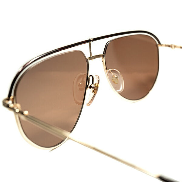 メタル系のアビエーターをベースに、セル巻きとレンズ、ゴールドのリム、それぞれ絶妙なバランスで配置しながらフロントリムの上部をセル巻き仕様にしたり、
