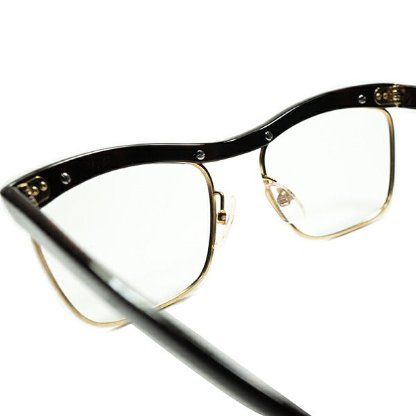 金張のフルメタルのCARLTONの眉部分とテンプルをセル生地にしブロータイプとして仕上げたユニークで斬新なデザインは、 どこか無機質さとキレキレなシャープな洗練された印象で、