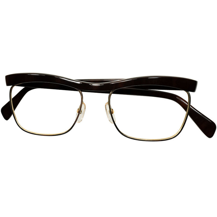 それとは対極的ともいえるフレンチらしいダークデミのセル生地と金張ゴールドのシックな色使いがなんとも、絶妙な関係性を気づいた仕上がりとなっております。