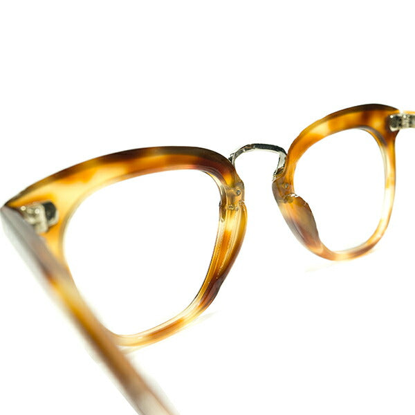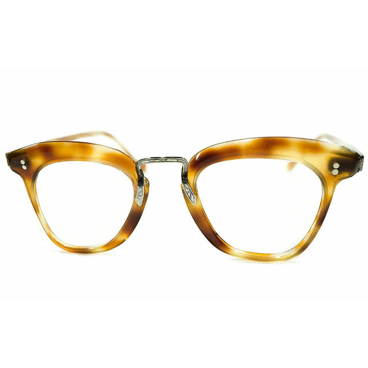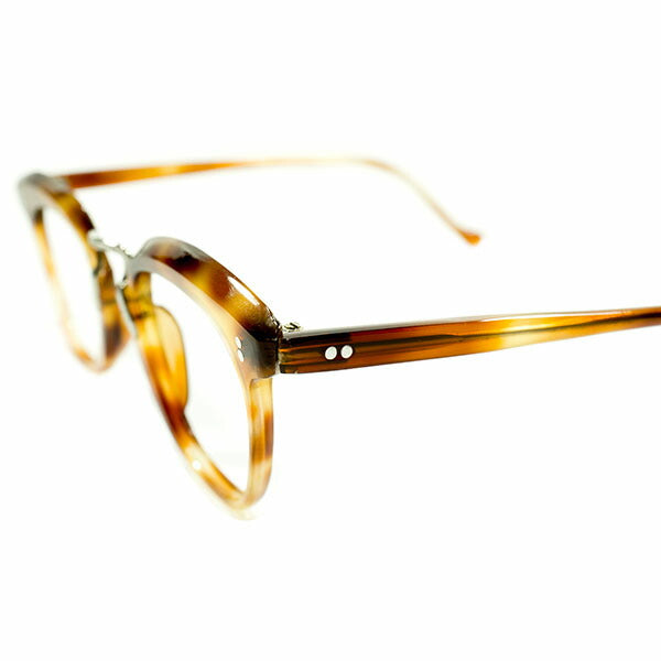 とここまでなら変哲のないオールドフレンチですが、本来全てセルで構築されているはずのところブリッジに変化を与えただけで高級感や特別感のあるデザインに昇華されている点は必見で、黄金期のフレームながらも限りなく1930s以前の意匠に敬意を払ったありそうでないレアデザインと言えますし、カスタムオーダーやビスポークであってもおかしくない完全1点物感が眼鏡好きをそそるのではないでしょうか。