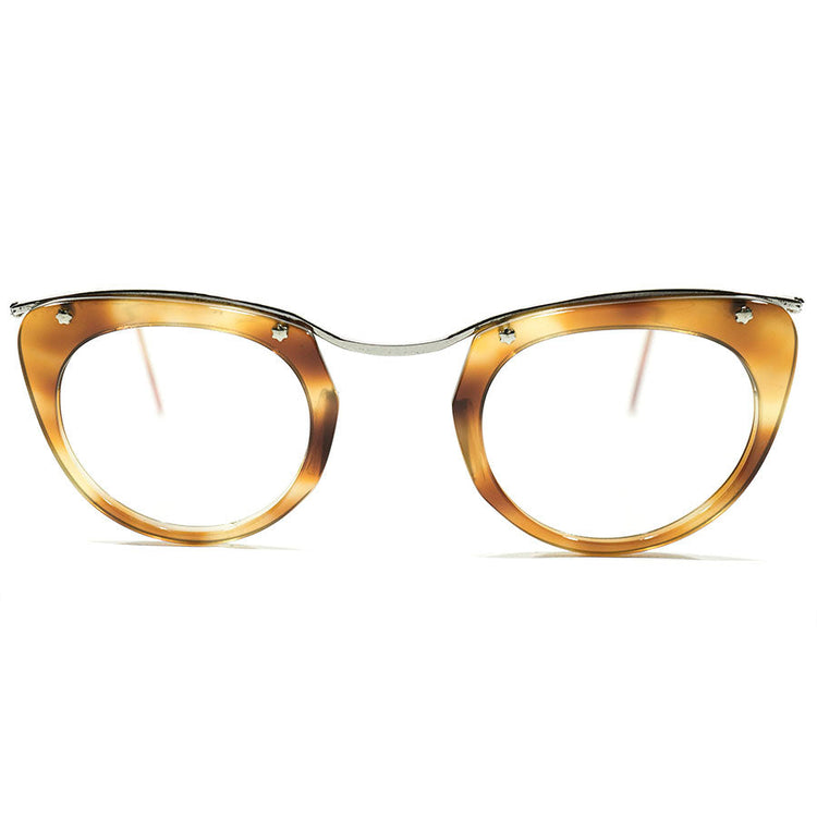 フレンチヴィンテージが誇る名作シェイプの一つ通称"AMOR STYLE"の初期型に当たる1950年代頃に製造されたコンビネーションフレームになります。