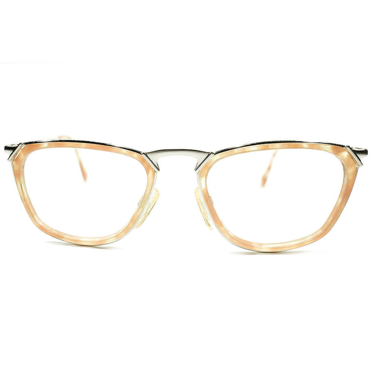 デッドストック 1980-1990s ドイツ製 MADE IN GERMANY CERRUTI 1881 by RODENSTOCK ローデンストック Wネーム インナーリム ウェリントン ペールオレンジ×シルバー ビンテージ ヴィンテージ 眼鏡 メガネ 【A4521】