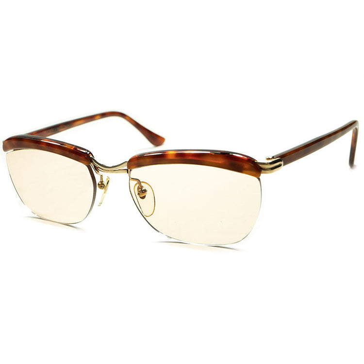 宝飾級MOODx最高精度 1950s-60s DEADSTOCK デッドストック フランス製 MADE IN FRANCE 本家 AMOR アモール FRAME FRANCE フレーム フランス 本金張 リムレスブローDEMIx BROWN LENS ビンテージ ヴィンテージ 眼鏡 メガネ 【a5662】