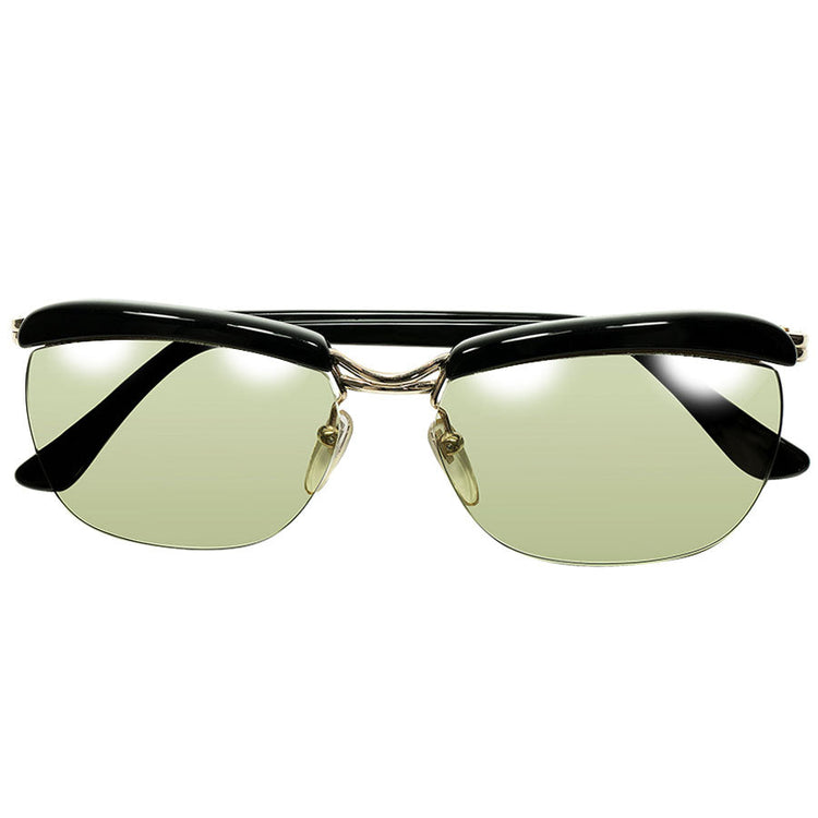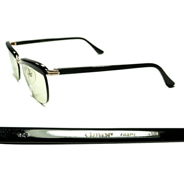 繊細優美 x世界TOPクオリティ DEADSTOCK デッドストック1950s-60sフランス製 MADE IN FRANCE 本家AMOR アモール FRAME FRANCE フレーム フランス 本金張 リムレスブロー黒 GREEN LENS ビンテージ ヴィンテージ 眼鏡 メガネ 【a5663】