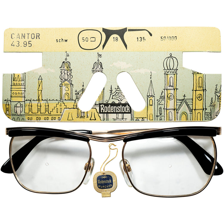 SUPER SPECIAL オールドARCHIVE 1950-60sデッドストック 西ドイツ製オリジナル RODENSTOCK ローデンストック 初代CANTOR 1/10 12K金張 size50/18黒 ビンテージ ヴィンテージ 眼鏡 メガネ 【a8701】