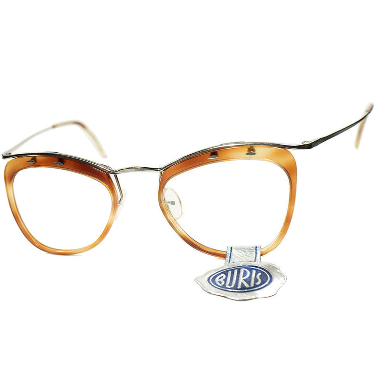 フランス眼鏡生産のメッカのオヨナ発の小さな工房で製造されたものと推測されるBURISというメーカー製の1950年頃のスモールサイズ個体がデッドストックで入荷しました。