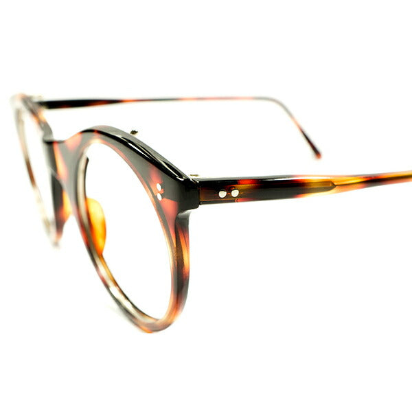 発展途上初期シェイプ デッドストック 1940s 英国製 MADE IN ENGLAND EGG SHAPE クラシックラウンド METAL芯入リム 鼈甲柄 ビンテージ ヴィンテージ 眼鏡 メガネ 丸眼鏡 イギリス UK 【A2606】