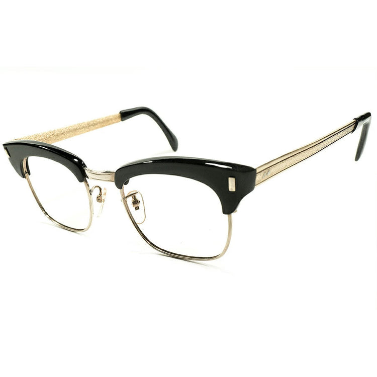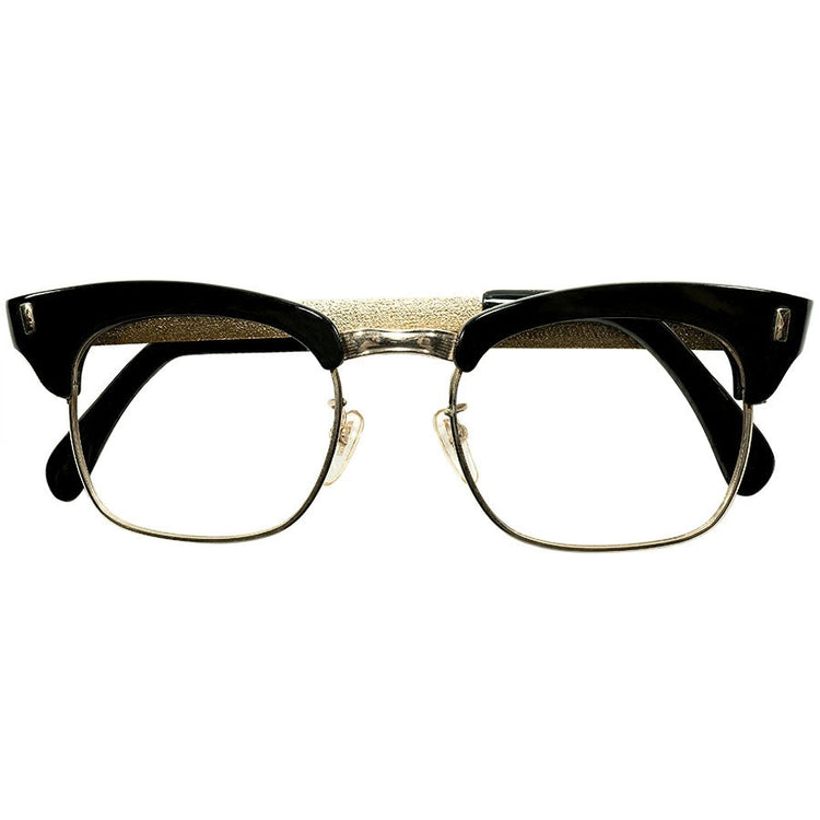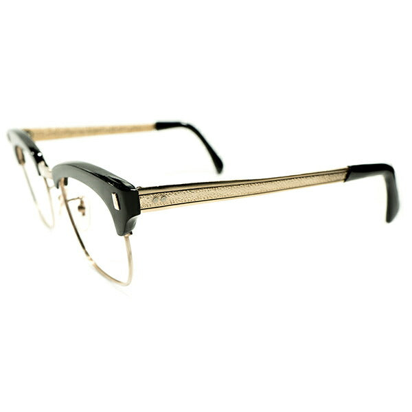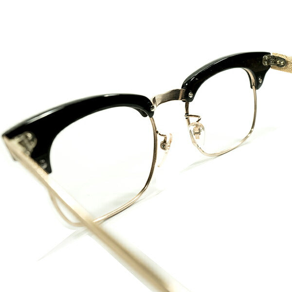 定番SHAPEレアデザイン デッドストック 1960s 英国製 MADE IN ENGLAND BLACKセル×GOLDプレート型TEMPLE コンビネーション ブロータイプ ビンテージ ヴィンテージ 眼鏡 メガネ イギリス UK 【A4543】