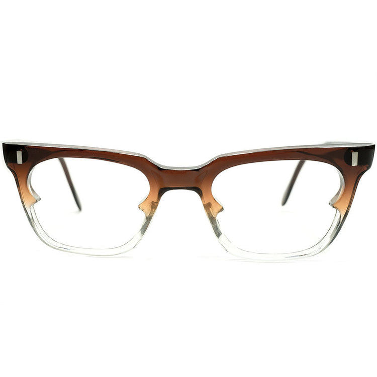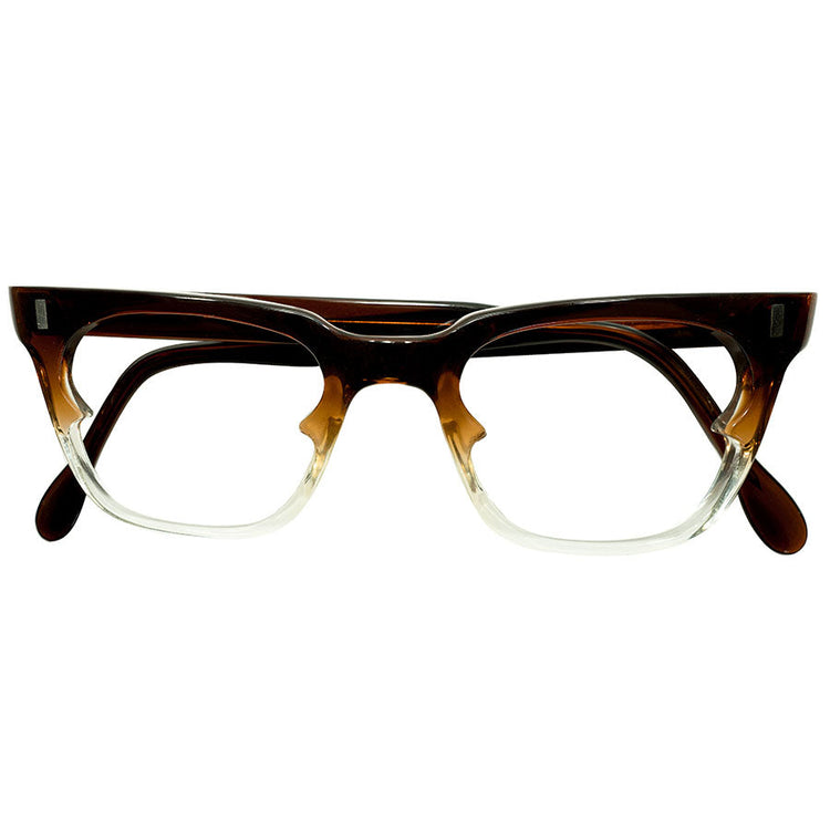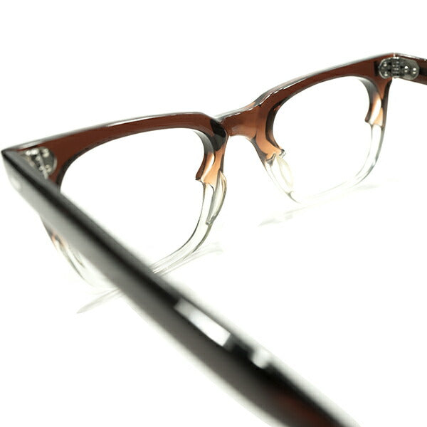 ミッドセンチュリー期ならではなブラウンフェードのカラーリングも現代では新鮮かつよりヴィンテージ然とした雰囲気をお楽しみ頂けますし、実はウェリントンシェイプの下半分のみにレンズをはめる溝があり、ウェリントンシェイプながらハーフアイのようなリーディンググラス仕様も唯一無二でヒネリのある仕上がりになります。
