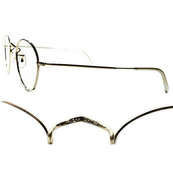 ブリッジ裏にALGHA 12KT GF、左テンプルにFRAME MADE IN ENGLAND、右テンプルにALGHA 12KT GFの刻印がございます。