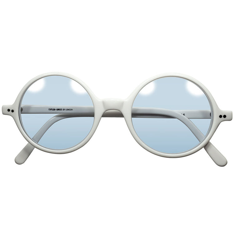 快適ストレスフリーサイズ 激RARE初期作品1970s ENGLAND製デッドストック CUTLER AND GROSS カトラー アンド グロス 正円ラウンド 稀少WHITE 実寸48/22 ビンテージ ヴィンテージ 眼鏡 メガネ 【a7556】