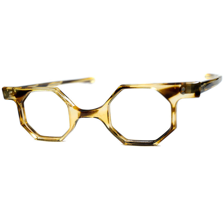 刺激中毒者向けUNUSAL DESIGN 初見デザイナーピース1940s-50s英国製HAND MADE 一山式ブリッジ変形SHAPE八角形 小径オクタゴン 超GOODSIZE ビンテージ ヴィンテージ 眼鏡 メガネ 【a8046】