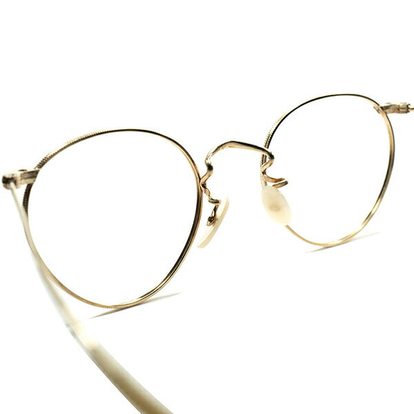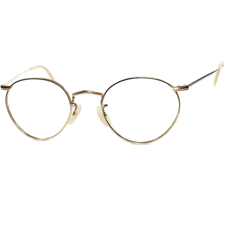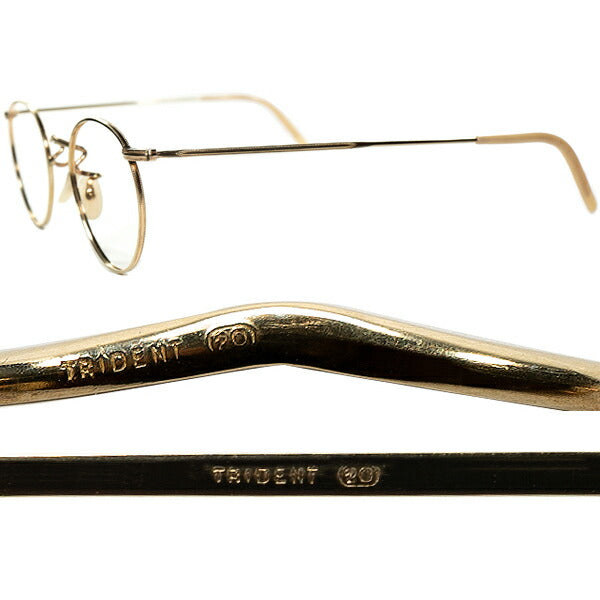 SUPER RARE狭めPD向け コンパクトサイズ個体1940s-50s ENGLAND製デッドストック 英国古参TRIDENT製 FUL-VUE STYLE 金張 PANTO ラウンド 丸眼鏡 42/18 実寸 ビンテージ ヴィンテージ 眼鏡 メガネ 【a8886】