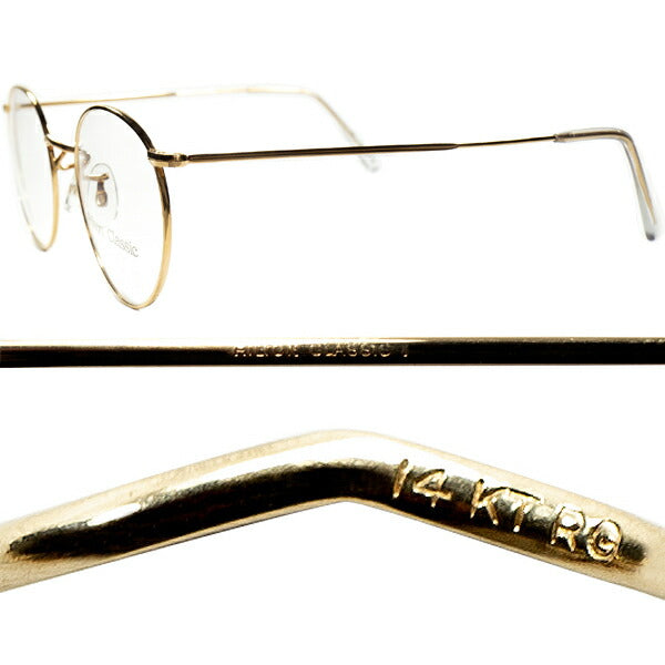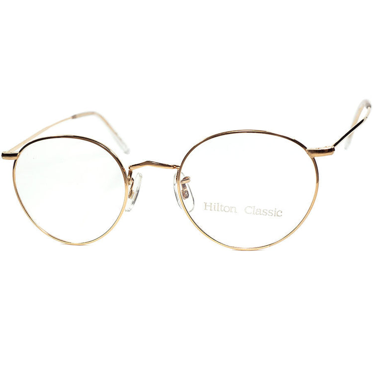 幅広FACE向け大きめサイズ個体 1970s デッドストックENGLAND製 HILTON CLASSIC ヒルトン クラシック PANTOラウンド 14KT金張 size49/20 丸眼鏡 ビンテージ ヴィンテージ 眼鏡 メガネ 【a9090】