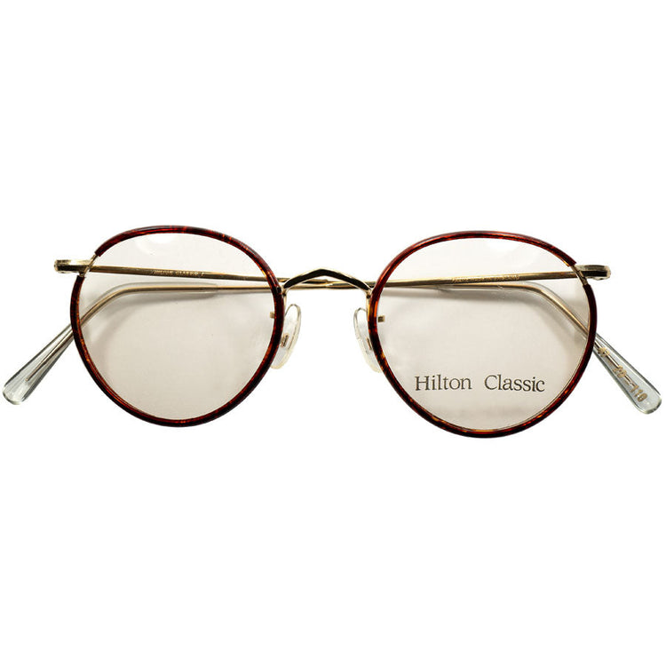 最定番CLASSICカラー 超GOODSIZE個体 1970s デッドストック ENGLAND製 HILTON CLASSIC ヒルトン クラシック セル巻 PANTO ラウンド 14KT金張size47/20 ビンテージ ヴィンテージ 眼鏡 メガネ 【a9328】