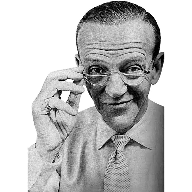 フレッド・アステア氏がフォトアーカイブで愛用していた姿が衝撃的なカッコ良さのアイウェアデザインである、ハーフアイはさかのぼると、
