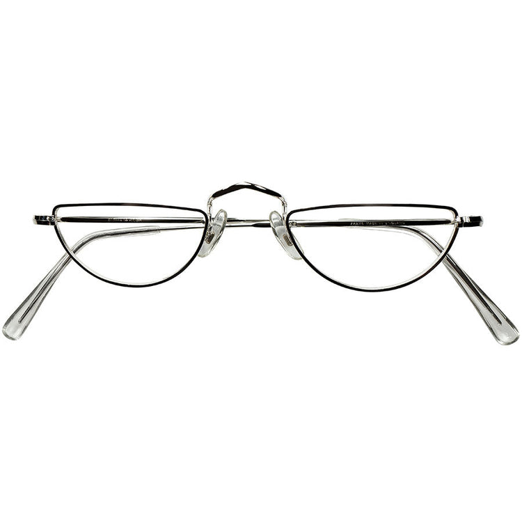 遠くを見るときはレンズを通さず、手元や下方向を見るときだけレンズ越しにみるように合理的な設計がなされており、デザイン性にも優れたアーティスティックな現代ではほとんど見かけないデザインが、