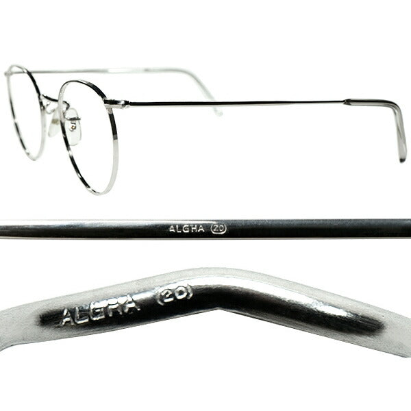 さらに古い1960年代頃のものと推測されるALGHAでは1930年代から1940年代頃のアンティークのものにも採用されていた「ALGHA (20)」刻印がブリッジ裏と右テンプル内側に打刻された、