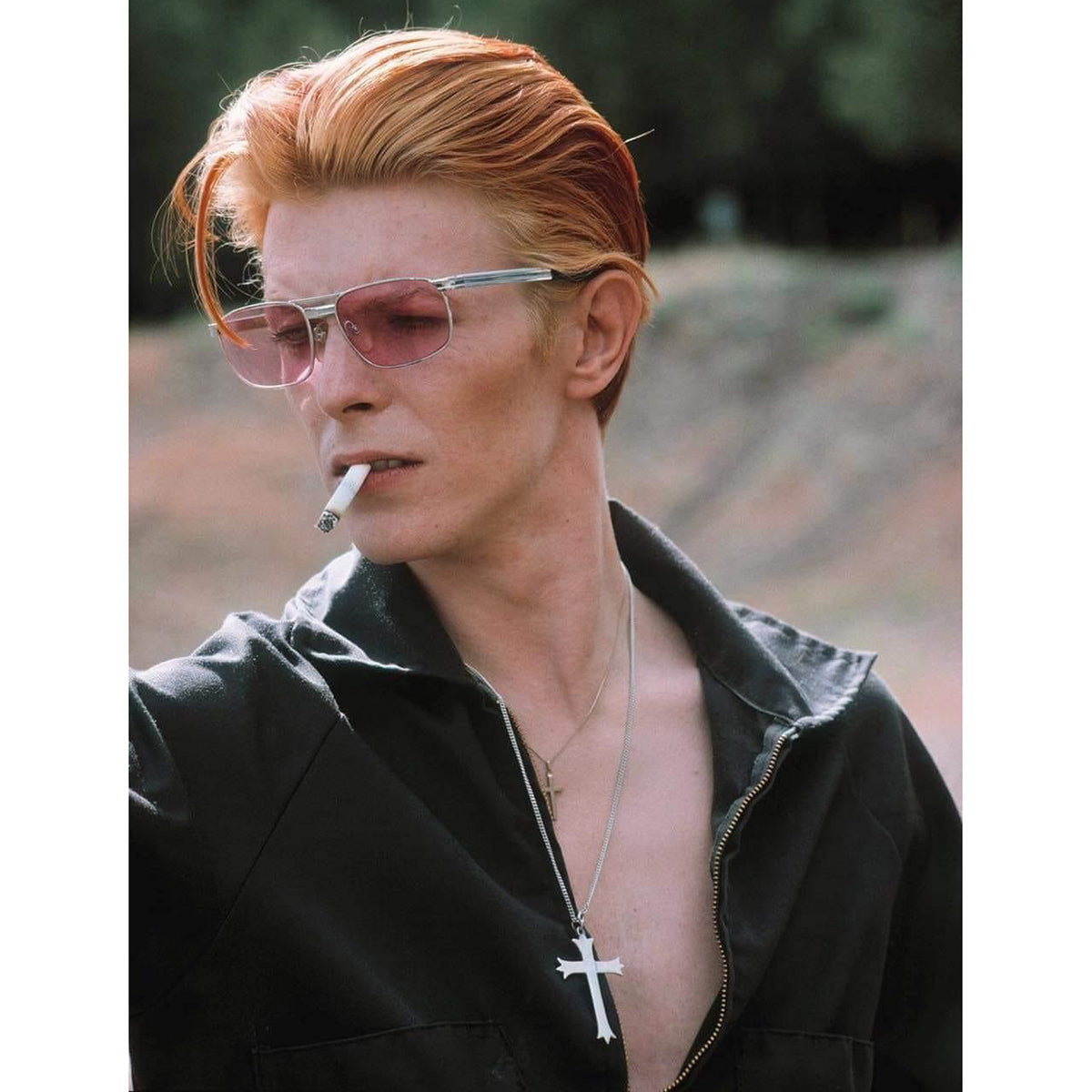 音楽界の殿堂入りのレジェンドであるDボウイ氏が当時ピンクのレンズを入れて愛用していたモデルとして、