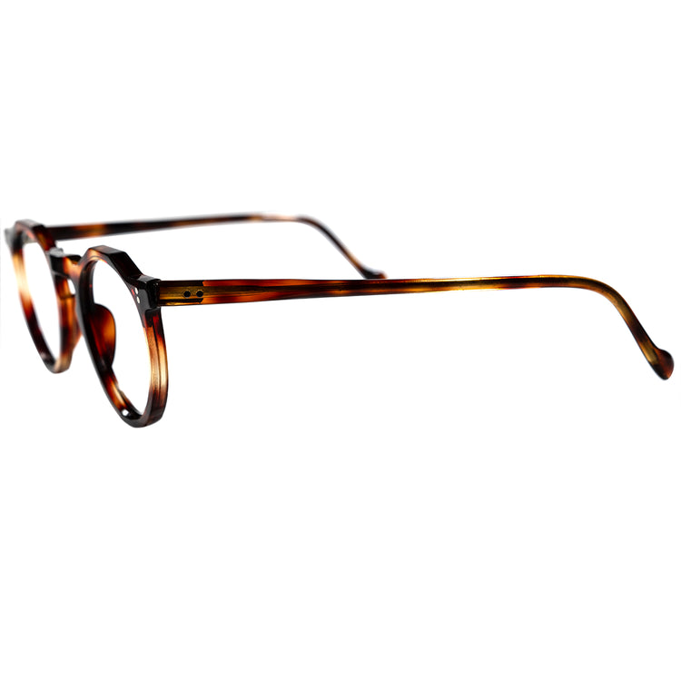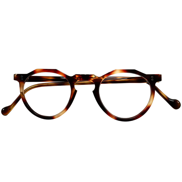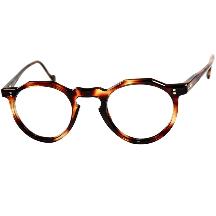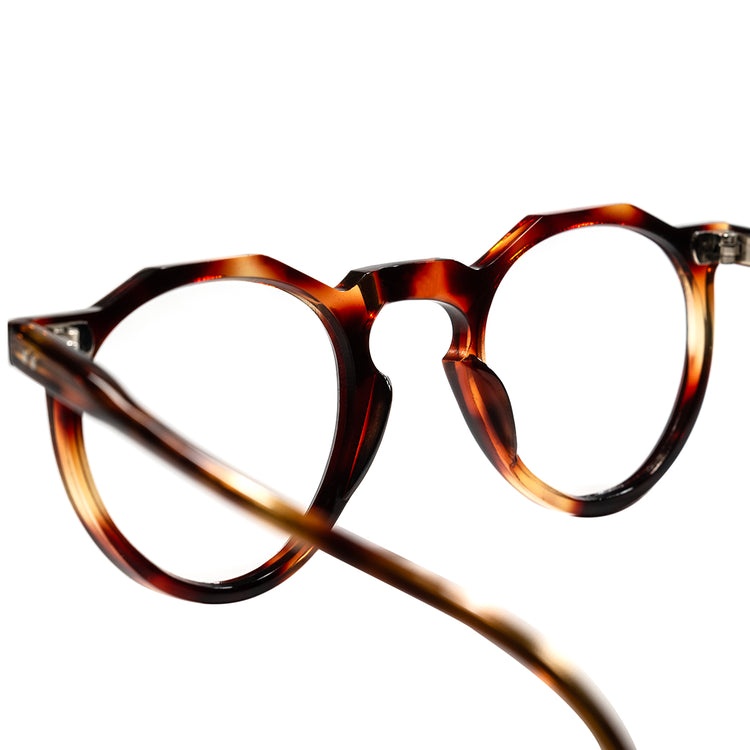 癖のない基本のクラウンパント型に、ダークトーンデミアンバー生地やキーホールブリッジなど、FRAME FRANCEの一番人気シェイプであるクラウンパントでも、