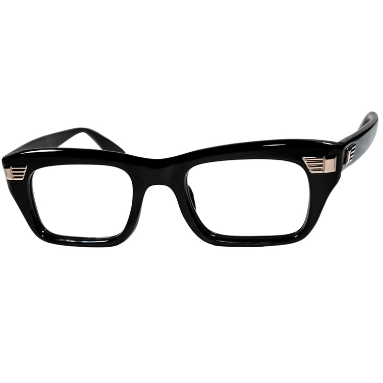 最も良い時代のドイツ製品らしい質実剛健さの極み1950-60s 西ドイツ製デッドストック FRAME WEST GERMANY 金張RIVET採用 ウェリントン 黒size48/20 ビンテージ ヴィンテージ 眼鏡 メガネ 【b0457】