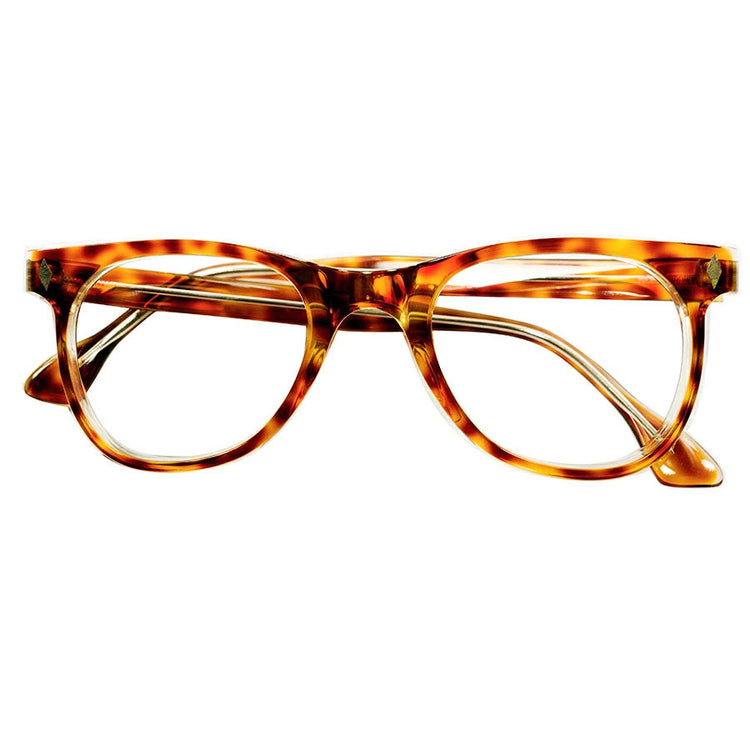 USヴィンテージで人気の高いメーカーの一つTART OPTICALのフレームに見られる、厚み部分をクリアにしたスモーク仕様の鼈甲柄を採用し、フロントを5mmの厚みで仕上げた見応えのある一本になります。