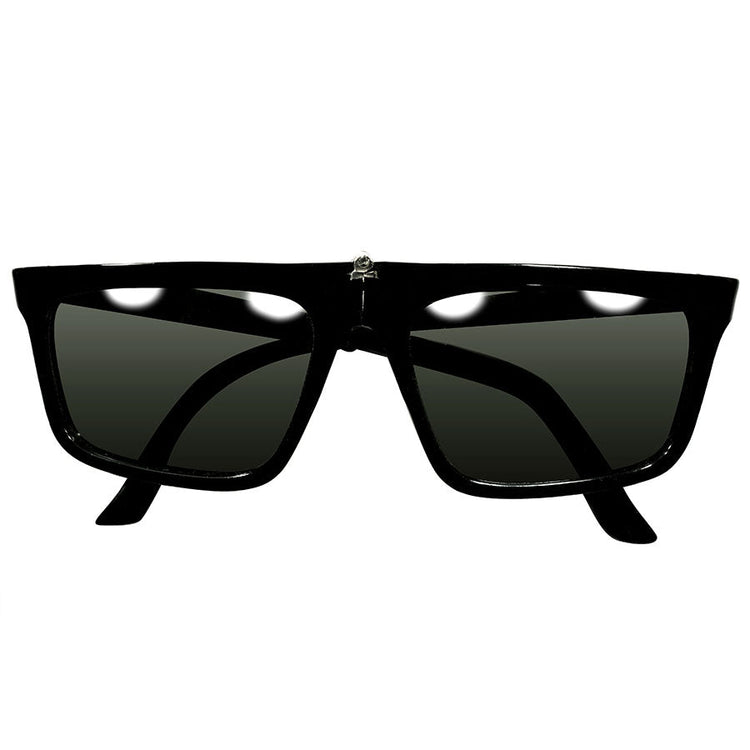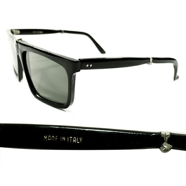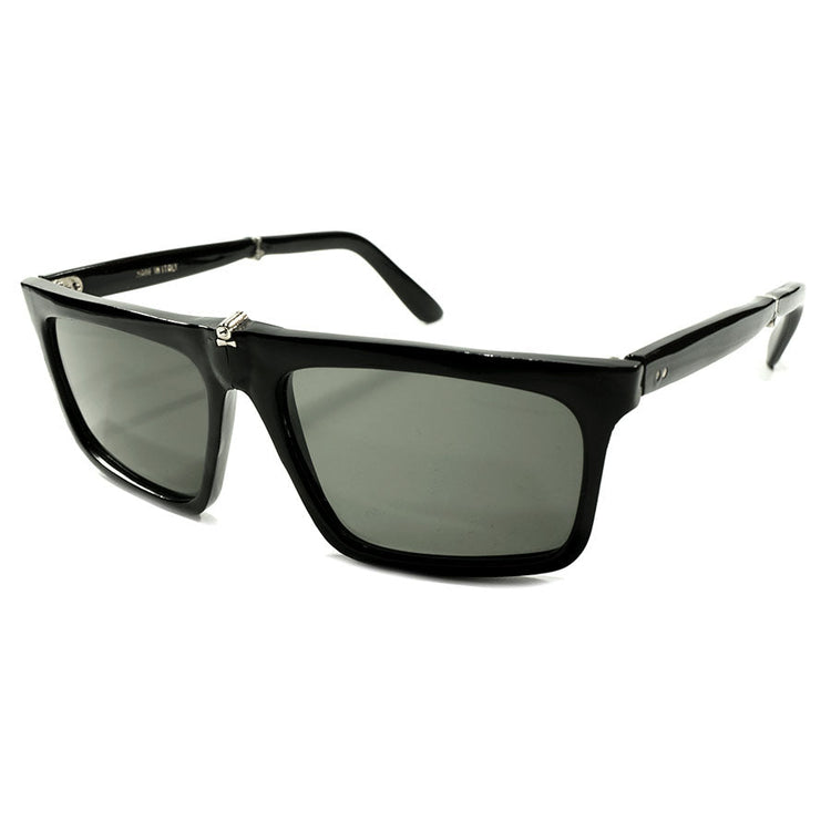 ゲキ渋ALL BLACK&実用的MODE デッドストック 1960s イタリア製 MADE IN ITALY 幾何学シェイプ 折り畳み式 FOLDING 黒 ウェリントン 当時物ガラスレンズ入 サングラス ビンテージ ヴィンテージ 眼鏡 メガネ 【A4362】