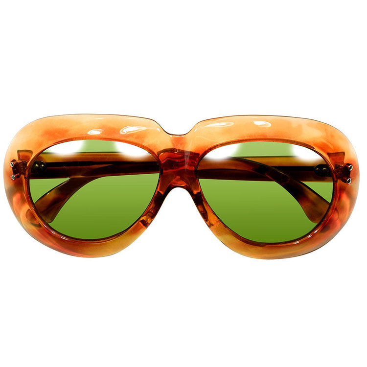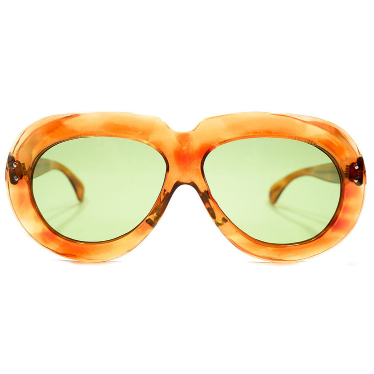 フロント幅146mmのGOODサングラスサイズを活かすべく、日本製デッドストックグリーンガラスレンズをインストールし、アバンギャルドでありながらデザイン、サイズ面、インパクト全てにおいて現代にも通用する1点ものとしてフィニッシュを遂げた極上個体ですので、気になる方は是非お試し下さい。