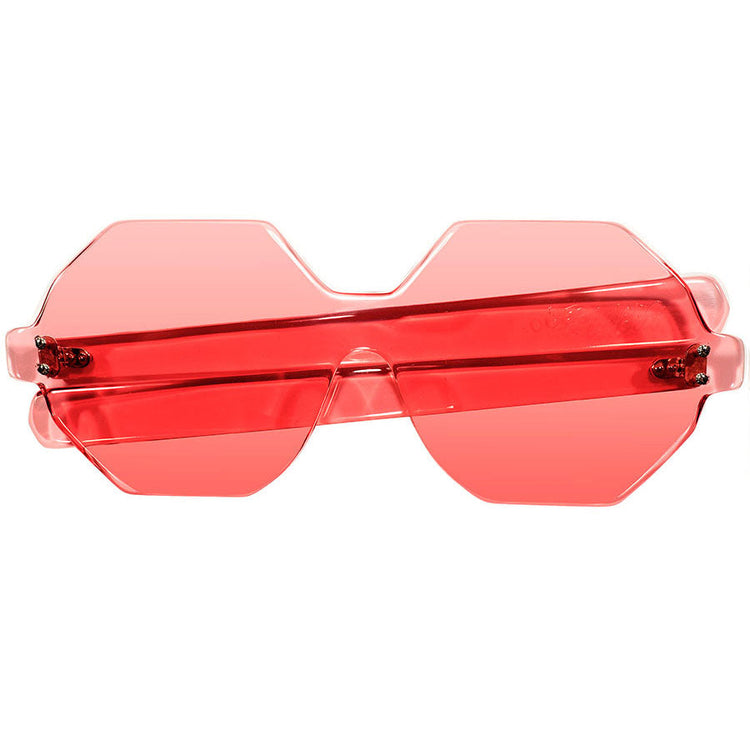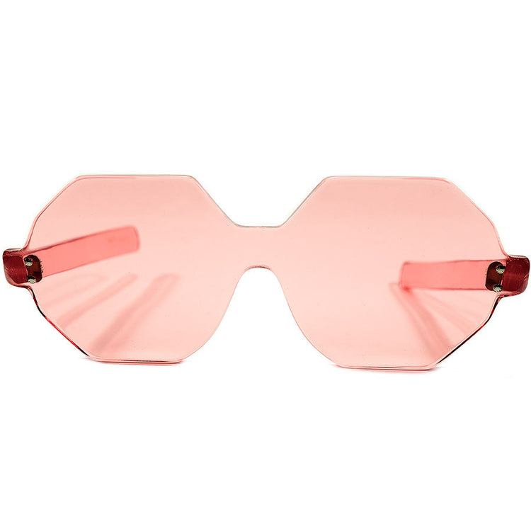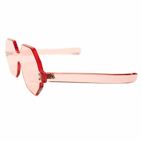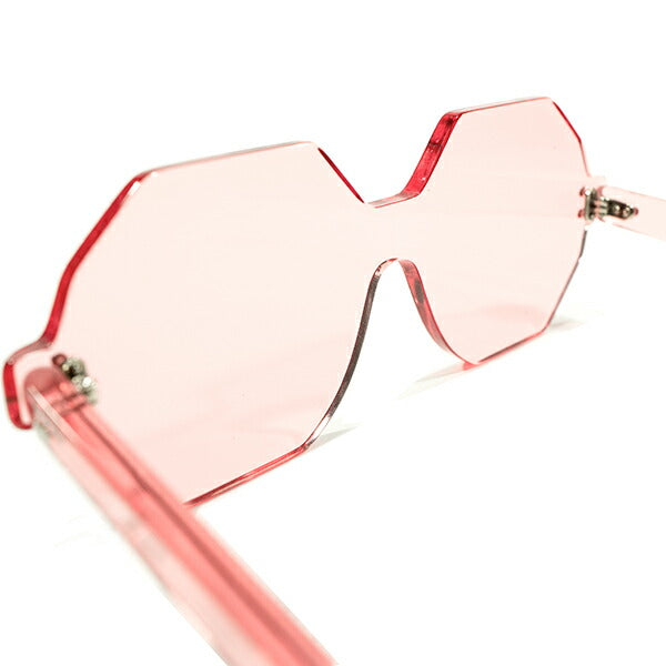 過去に入荷歴のあるものとは異なり、一枚仕立ものでは初見となる歪なOCTAGONシェイプという時点で即KO必至ですが、レンズを入れたフレーム同等にずっしりとした重厚感が感じられる、肉厚硬質の生地使いによるフラットフロントや極太テンプル、アメリカンJUNK FOODテイスト漂う鮮やかなストベリーピンクカラーなど全てにおいて、ただでさえ個性の強いヴィンテージフレームとも一線を画する、強烈にパンチが効いた1本です。
