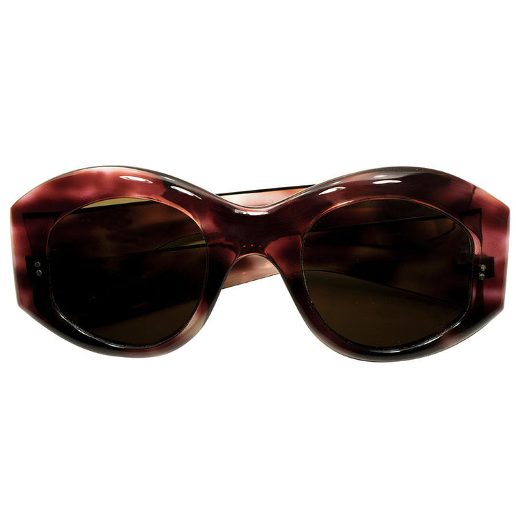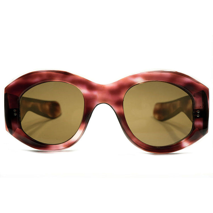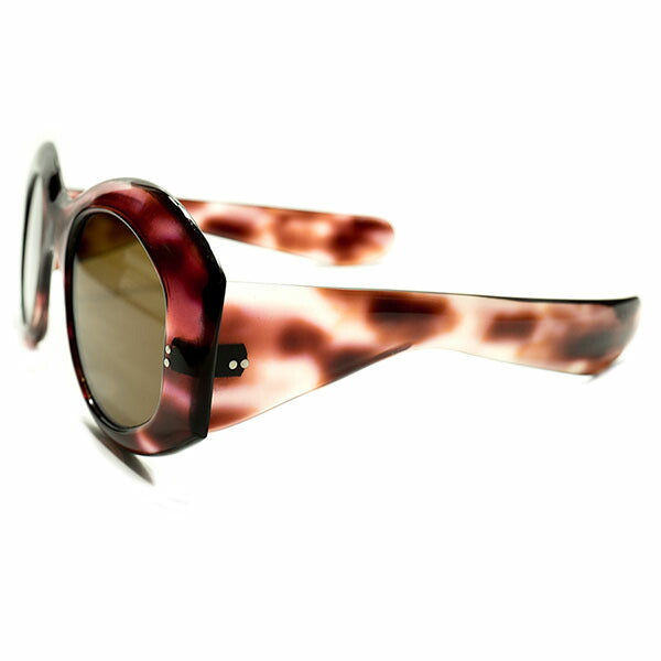 この時代特有の渋めな薄型フラットフロントに対して、さらに薄いフラットBROWNガラスレンズがインストールされている点も大きなポイントで、世界的に有名なワインの産地らしくボルドーを織り交ぜた幻想的な鼈甲柄の美しさだけでも十分であるところ、一層雰囲気を高めオンリーワンに昇華させている絶妙なカラーコンビネーションからは、フレンチヴィンテージのベーシックな魅力の1つである色彩豊かなカラー使いを、シンプルかつ的確に享受できるのではないでしょうか。