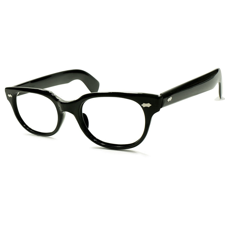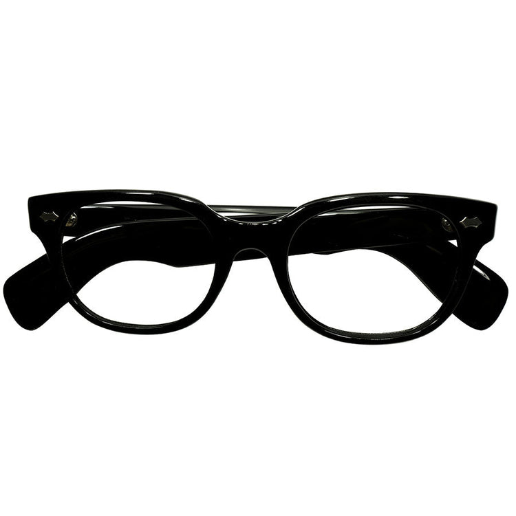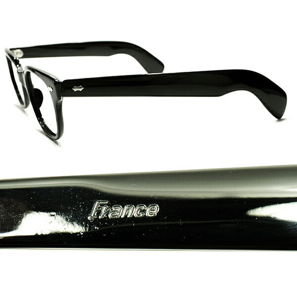 玄人好上級テイスト&GOOD SIZE 1950s-1960s フランス製 MADE IN FRANCE Wダイヤヒンジ×FATテンプル 極艶 黒 BLACK ウェリントンフレーム 実寸45/20 ビンテージ ヴィンテージ 眼鏡 メガネ 【A4872】