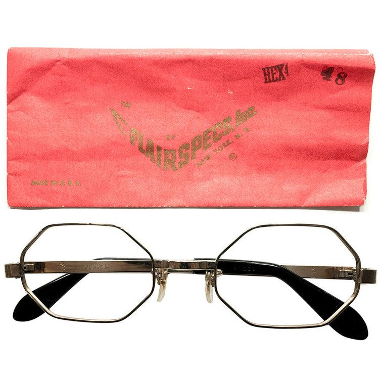 実用向GOOD SIZE スリーブ付デッドストック 1960s-1970s アメリカ製 MADE IN USA NYCオプティシャン発 1/20 12KGF 本金張 横長 オクタゴン size48/20 ビンテージ ヴィンテージ 眼鏡 メガネ【A5014】
