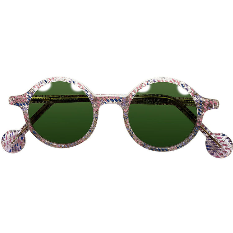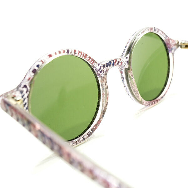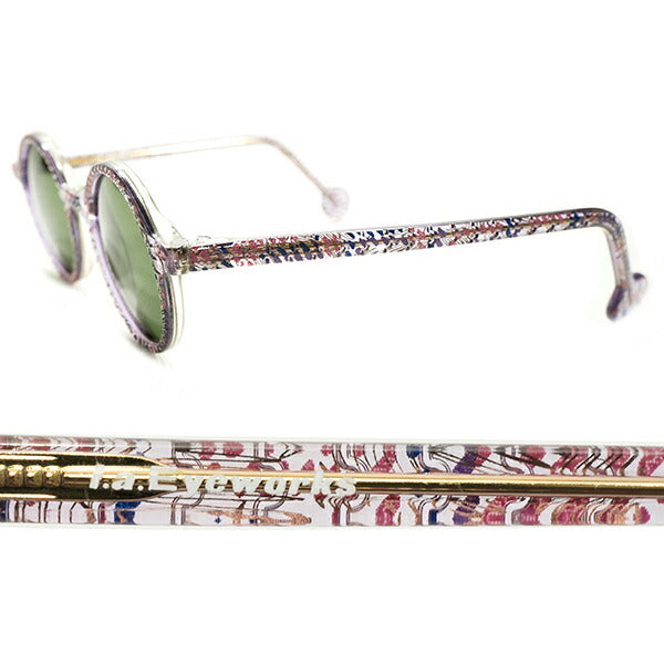 クラシカルな印象を受ける正円タイプのシンプルなラウンドシェイプになりますが、CLASSICなデザインにPOP CULTUREの影響を受けたかのような、l.a.Eyeworksの真骨頂でもあるモダンかつ多彩なカラー使いが目を引きますし、よく見るとフレームの表面全体に凹凸を入れる事により独特な質感、ルックスに仕上がった唯一無二な一本です。