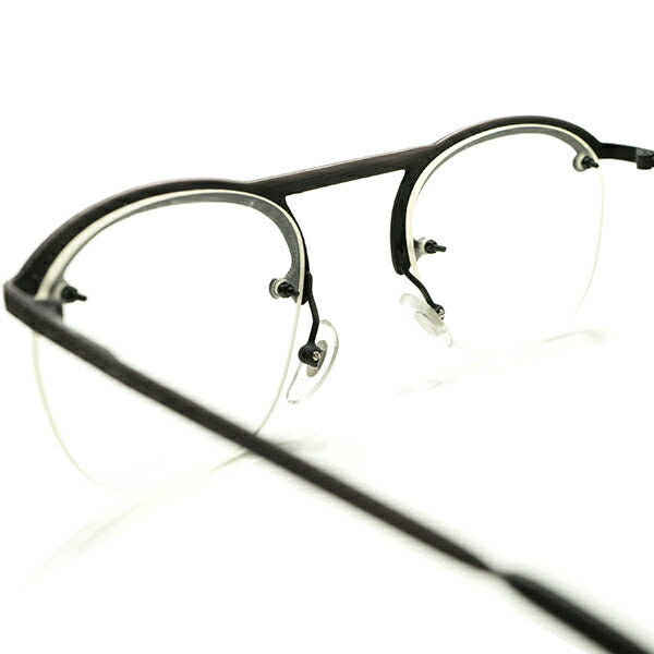 しかし、ただクラシックフレームを模倣するだけではなく、l.a.Eyeworksが考えるモダンなエッセンスが随所に取り入れられており、荘厳に入った彫金模様をより目立たせるべく太めで平べったいリム幅のデザインであったり、同ブランドのアイコンでもあるオタマジャクシ型のテンプルエンドであったりと、クラシックな雰囲気を損なわない程度にバランス良く取り入れられており、エイジング加工を施したブロンズメタルのくすんだ色合いにより、より雰囲気が増したモダンデザインの好例です。