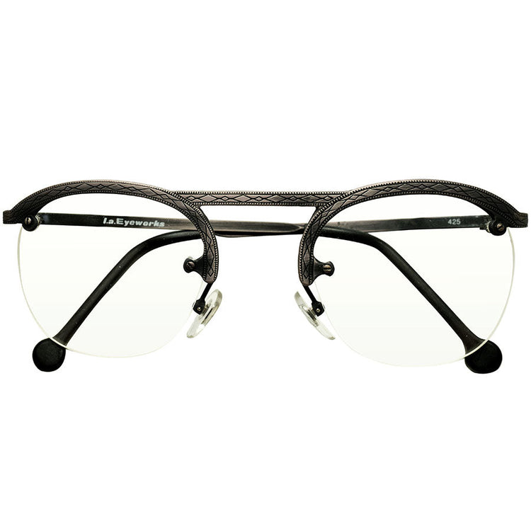 1979年の創業以来数多くのセレブリティに愛されてきたl.a.Eyeworks、中でも貴重な初期作品にあたる1980年代イタリア製リムレスパントフレームになります。