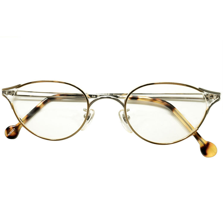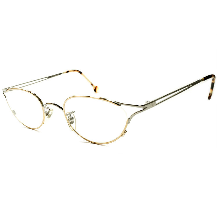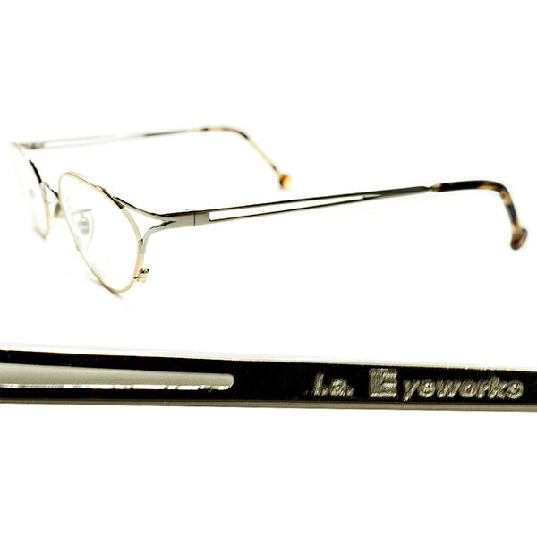 鋭敏LUXURYデザイン デッドストック 1990s イタリア製 MADE IN ITALY l.a.Eyeworks 立体構造 2TONE METAL GOLD×SILVER 変形オーバル型 ラウンド ビンテージ ヴィンテージ 眼鏡 メガネ 丸メガネ 実寸46/23良好サイズ 【A5200】