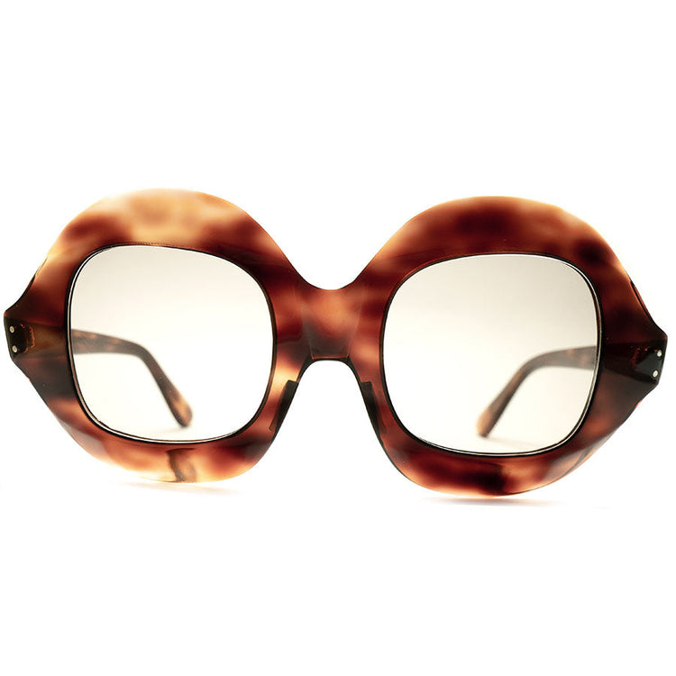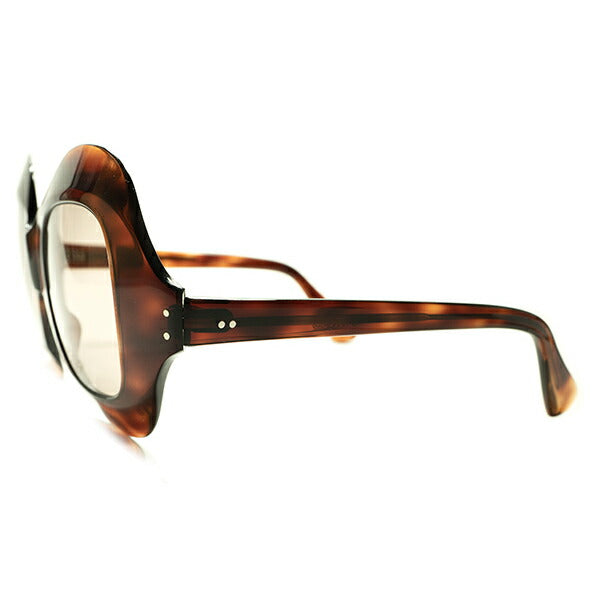 圧倒的モード志向 1960s-1970s フランス製 MADE IN FRANCE SUPER LARGEフロント 立的的傾斜CUTTING ラウンド ビンテージ ヴィンテージ 眼鏡 メガネ サングラス DEMI AMBER 鼈甲柄 【A5275】