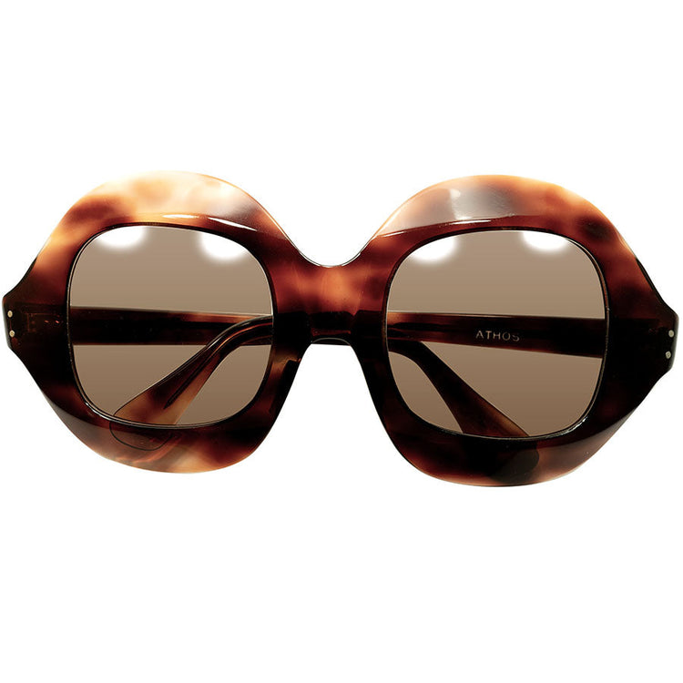 顔全体を覆うような超巨大シルエットが斬新すぎる圧巻なシェイプは、よく見ると奥行きをもたらす為傾斜カッティングがなされた独創的なデザインになり、同時期頃の"PIERRE CARDIN"を始めフレームデザインに一石を投じる単なる視力矯正器具に捉えられていた眼鏡に、モードな感性を取り入れたART志向の大変強い仕上がりになります。