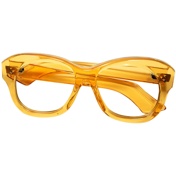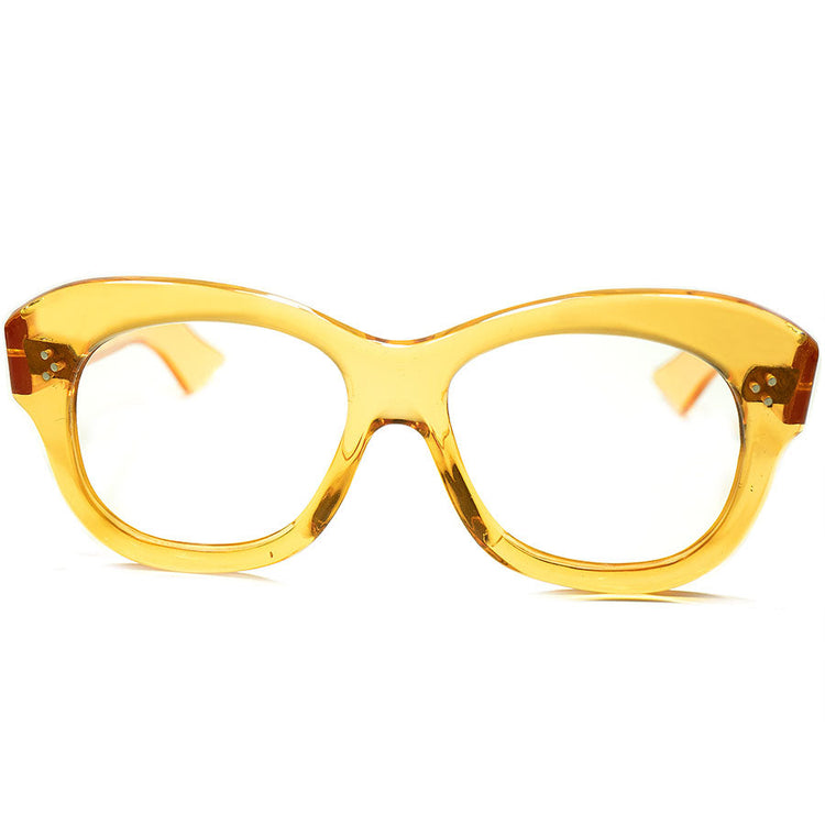 鮮烈マスタード色x3ドットPROUVEテイスト同モデル超希少色個体 1940sFRAME FRANCE フレーム フランス フランス製 デッドストック DEADSTOCK 芯なし極太TEMPLE 3DOT ウェリントン PANTO ビンテージ ヴィンテージ 眼鏡 メガネ 【a5630】