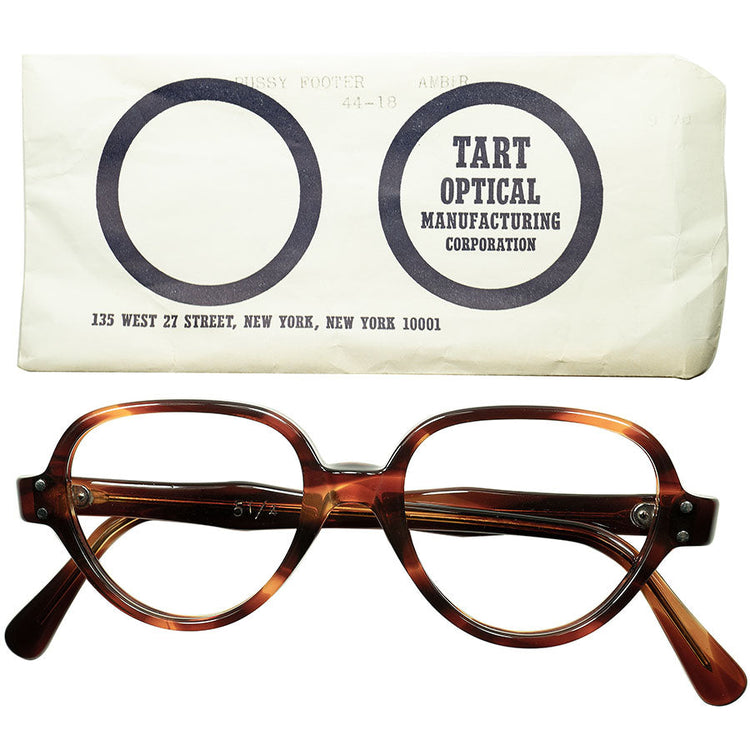 初期RAREモデル 小顔向け希少個体 1950s-60s スリーブ付 デッドストック USA製 TART OPTICAL タートオプティカル PUSSYFOOTER ビンテージ ヴィンテージ 眼鏡 メガネ size44/18 鼈甲柄 【a5727】
