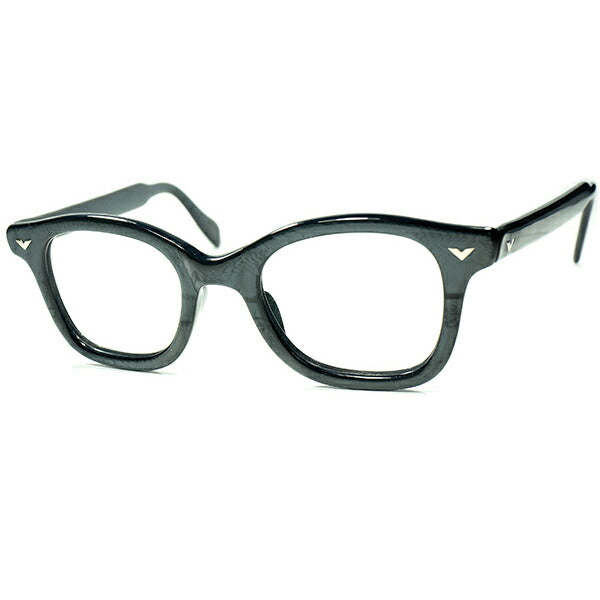 激渋トーンRARE生地採用 マニアックUSヴィンテージ 極上デッド ストック 1950s-60s USA製 オールドFRENCH PANTO系ウェリントンVヒンジ ビンテージ ヴィンテージ 眼鏡 メガネ 44/22実寸 【a5920】