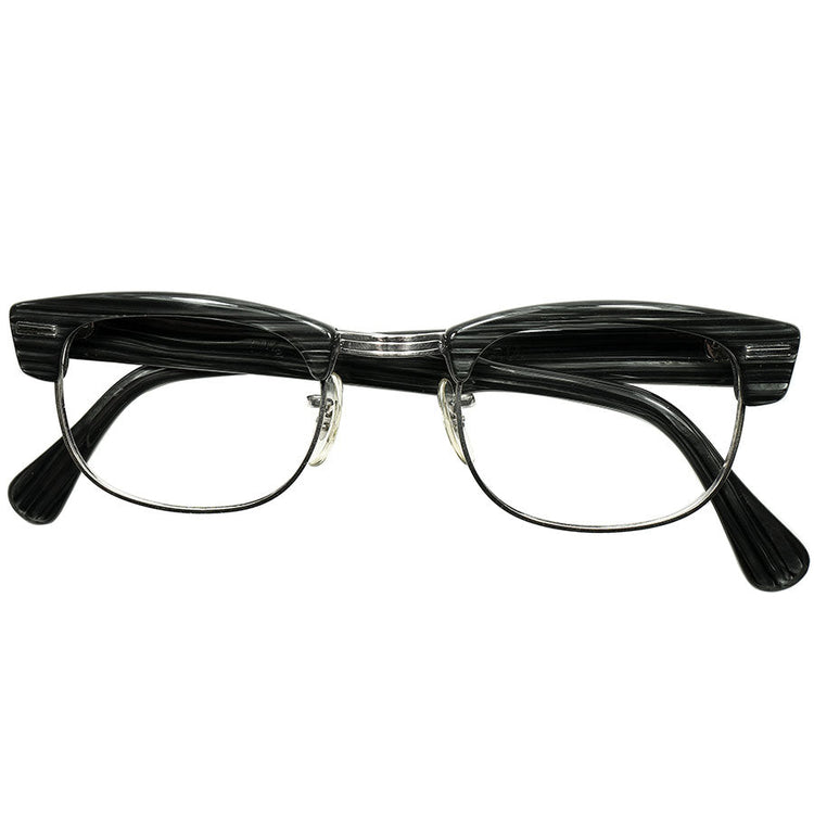 秀逸シルエット 黄金サイズ個体 1950s-60s USA製 デッドストック DEADSTOCK SRO BLACKWOOD ×1/10 12KGF 本金張 短縦ウェリントンブロータイプ size44/22 ビンテージ ヴィンテージ 眼鏡 メガネ 【a6308】