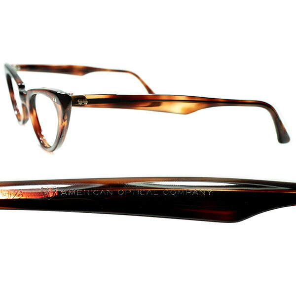 要CHECK未踏ジャンル 優秀個体1960s デッドストック USA製AO アメリカンオプティカル AMERICAN OPTICAL WスターCATEYEキャットアイ size46/22 AMBER ビンテージ ヴィンテージ 眼鏡 メガネ 【a6662】