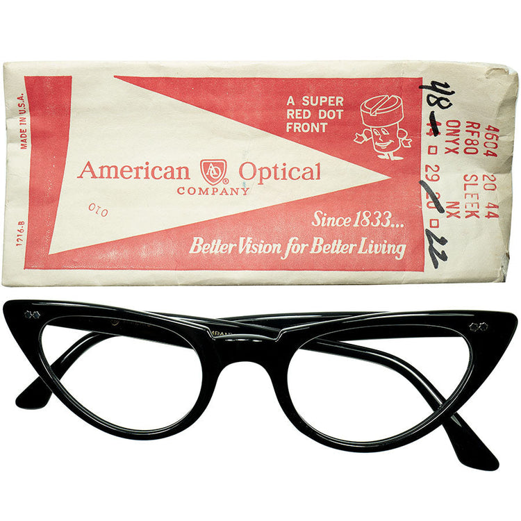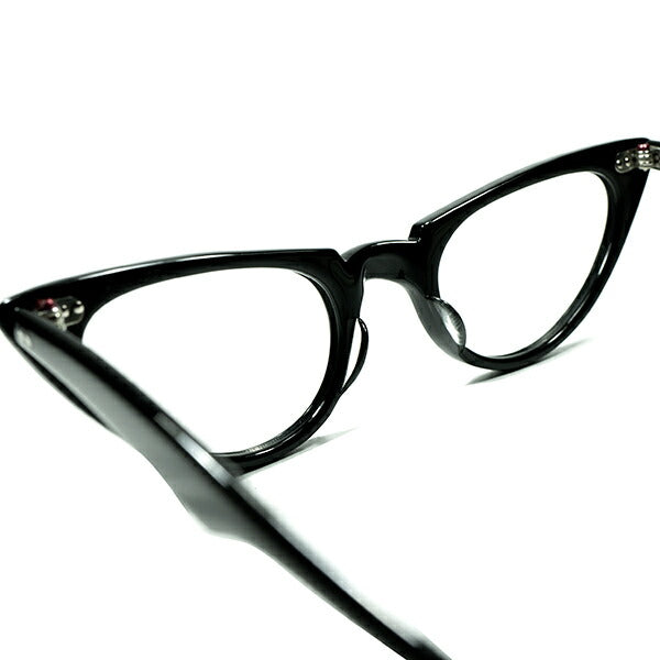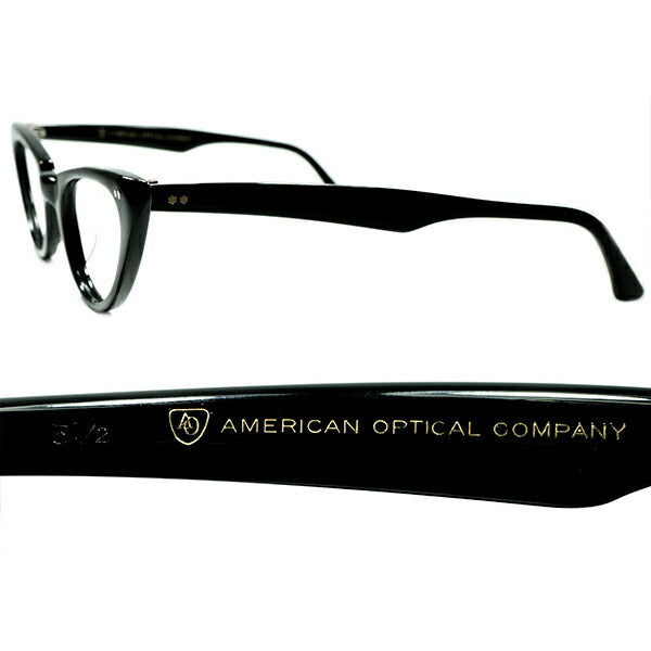 デイリー向け斬新シンプルモダン 1960s デッドストック USA製 AOアメリカンオプティカル AMERICAN OPTICAL Wスターヒンジ CATEYE キャットアイ黒 size48/22 ビンテージ ヴィンテージ 眼鏡 メガネ 【a6663】