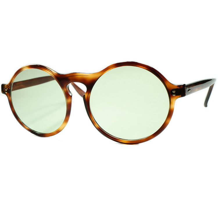 1910年代から1930年代頃のキーホールアッパーブリッジのアンティークデザインをラージシルエットで再構築した ユニークなデザインで、クラシックな質感はしっかりと踏襲しつつも遊びを効かせたこの時代としては斬新なビッグシルエット全盛の1970年代のものとはまた違った佇まいに仕上がっております。 旬な1990s STYLEのアウトフィットやストリートツイストのモードスタイルなど現代のファッションシーンとも非常に相性良く落とし込めるその風合い、質感、デザインは、現行はもちろんのこと、ビンテージ眼鏡の中でも中々見られない攻めの要素を盛り込んだクラシックフレームですので、