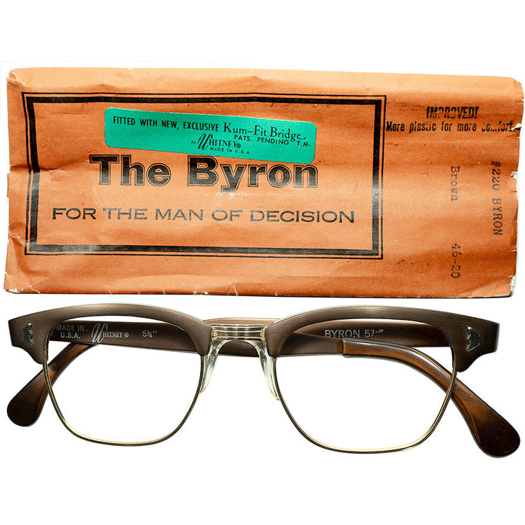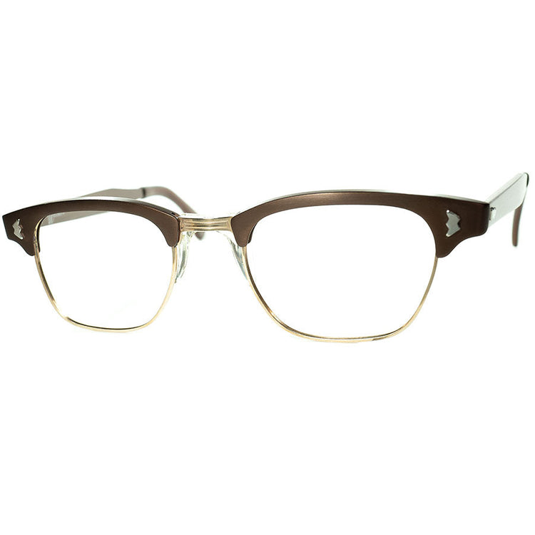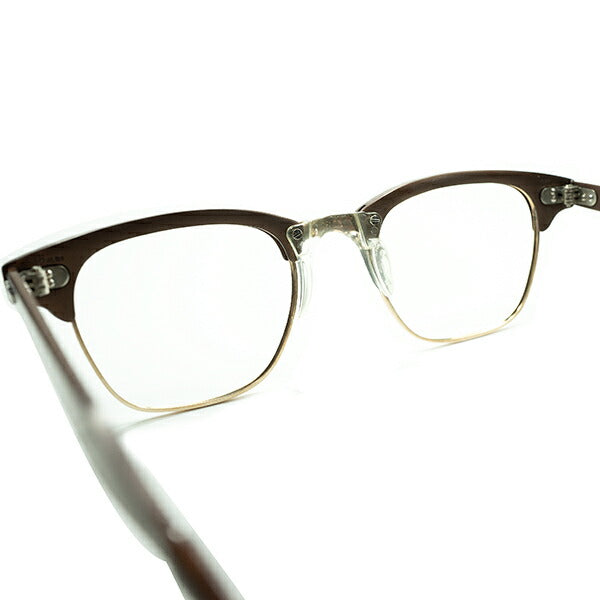 渋色CLASSIC色 シガーブラウン 1960s デッドストック DEADSTOCK USA製 NY発マニアック所WHITNEY特許出願NOSEPAD搭載 アルミx1/10 12KGF本金張BLOW TYPE size46/20 ビンテージ ヴィンテージ 眼鏡 メガネ 【a6817】