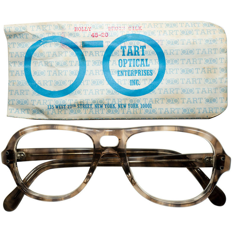 ドレープ感 & 激渋SMOKY TONE1960s-70sデッドストック USA製オリジナル TART OPTICAL タート タートオプティカル HOLLY size48/20 BROWN SILK ビンテージ ヴィンテージ 眼鏡 メガネ 【a7182】