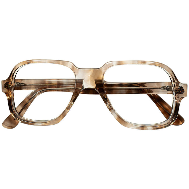 BROWN SILKと呼ばれるUSヴィンテージでもまず見かけない透明度の高いクリア系ブラウンを貴重としたシルクのようなドレープ感のある模様と、絶妙な色使いがなんとも美しい芸術的な佇まいを披露した鼈甲柄生地とが、